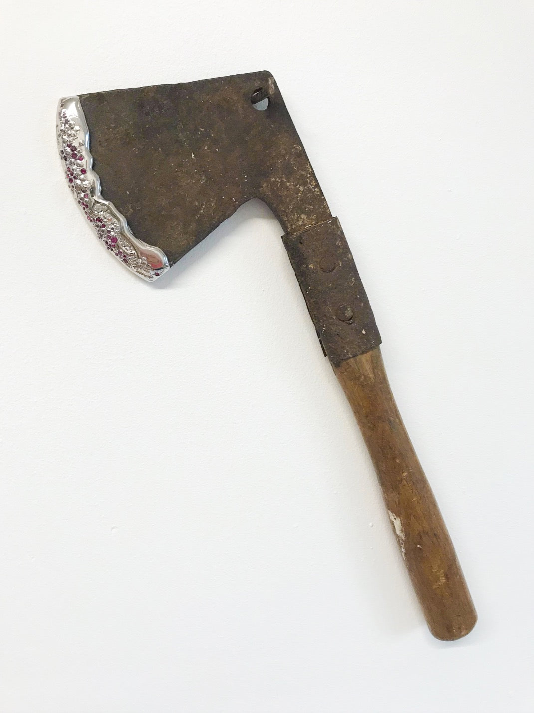 Medium: Found axe, sterling silver, natural diamonds and rubies