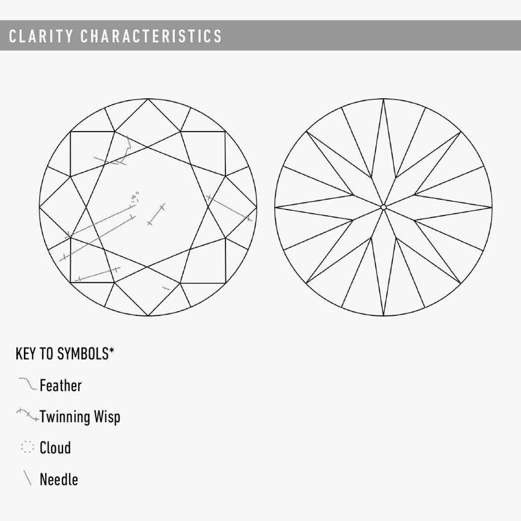 Clarity is measured by the relative absence of blemishes, like scratches and nicks on a diamond’s surface or inclusions within it. An inclusion could be any foreign substance trapped inside the diamond as it formed through the centuries, from a mineral crystal to another tiny diamond. The higher a diamond's clarity rating, the greater its value.