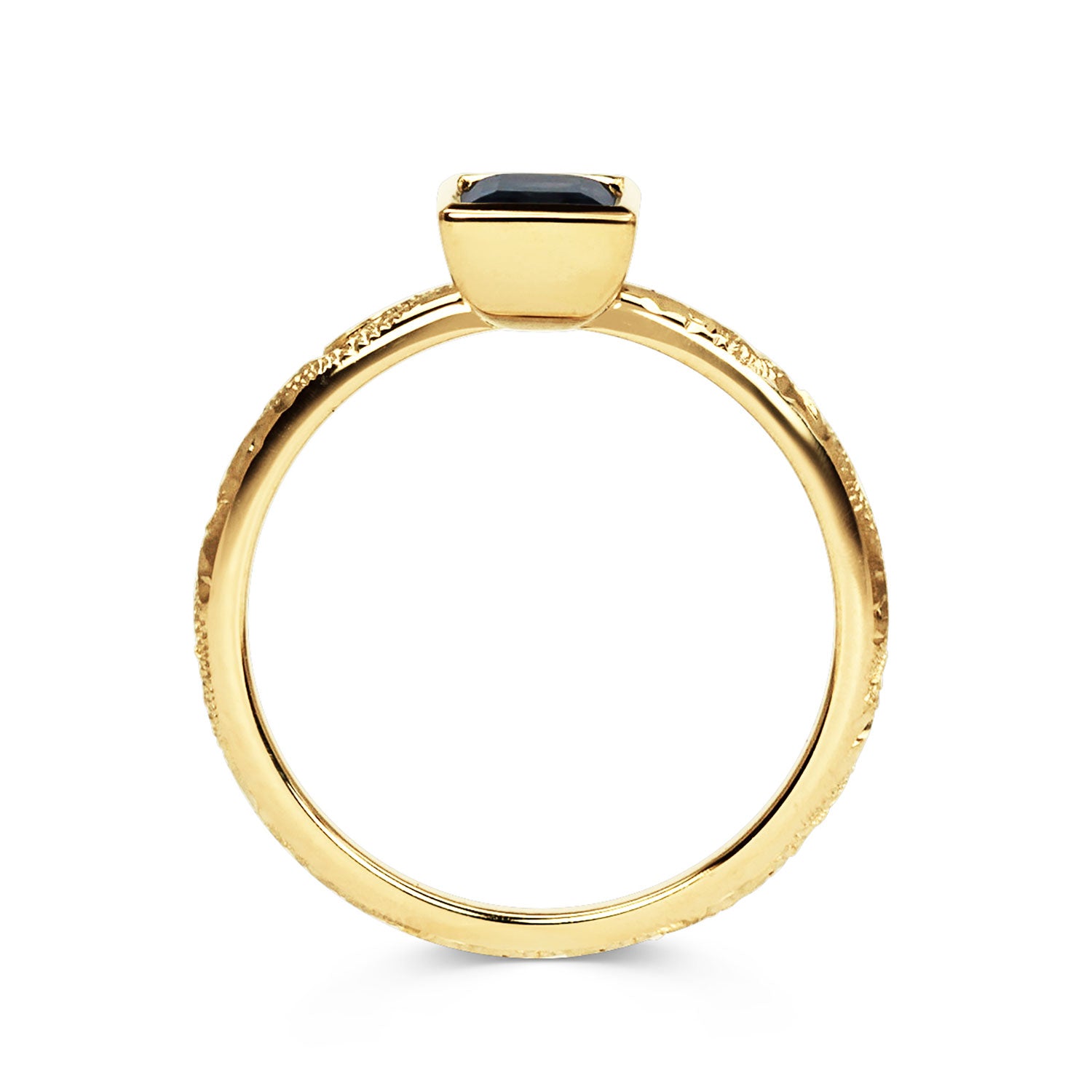Hailing from Malawi, this angular baguette centrepiece is traceable, fair-traded and conflict-free. Meanwhile, the foundations are laid by 18ct recycled yellow gold, making use of precious material already in circulation above-ground. The ring itself is the handiwork of experienced British craftspeople, like Darren who hand-engraved its intricate scroll motif.