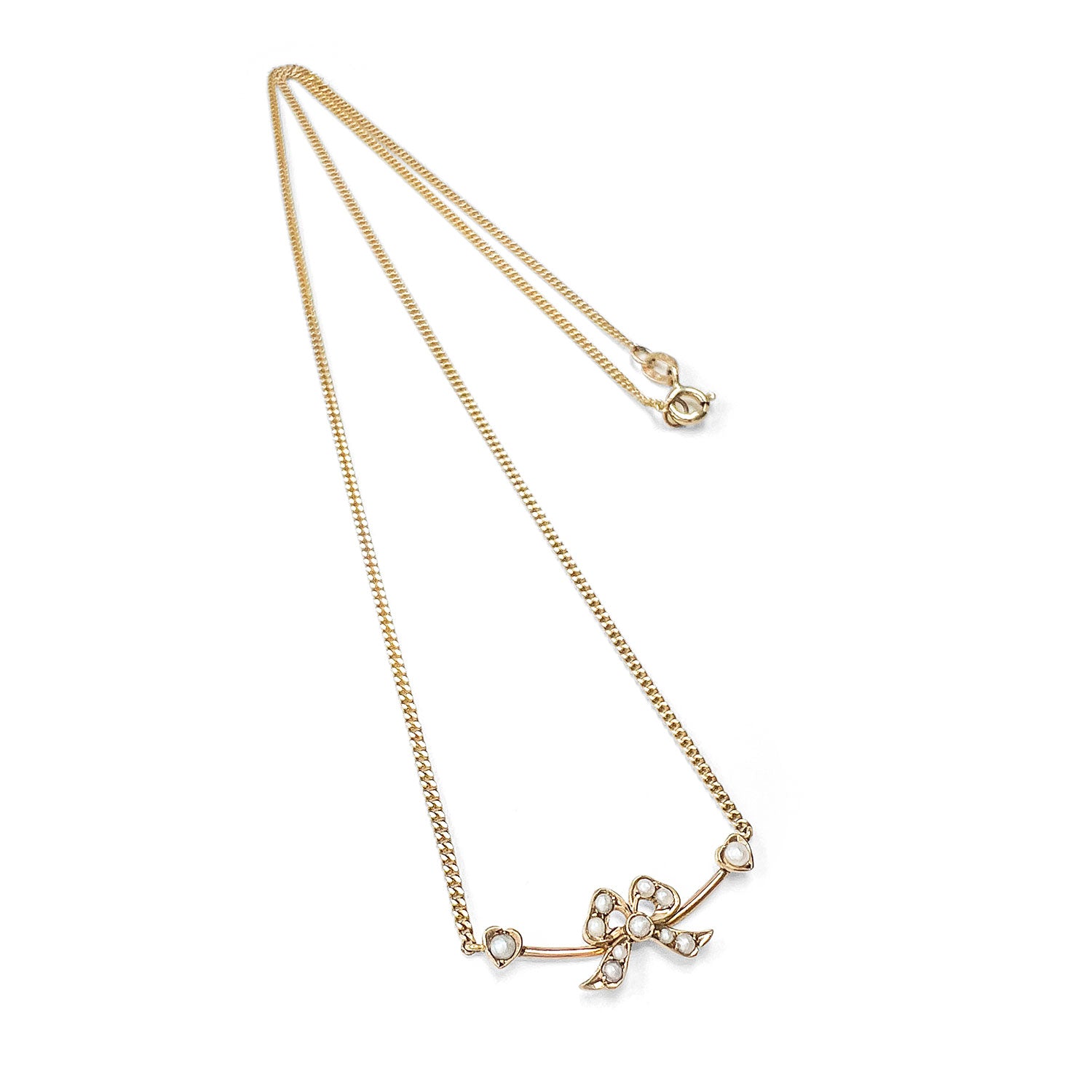 * Reclaimed antique Victorian bow brooch with natural pearls, reclaimed 9ct white gold chain